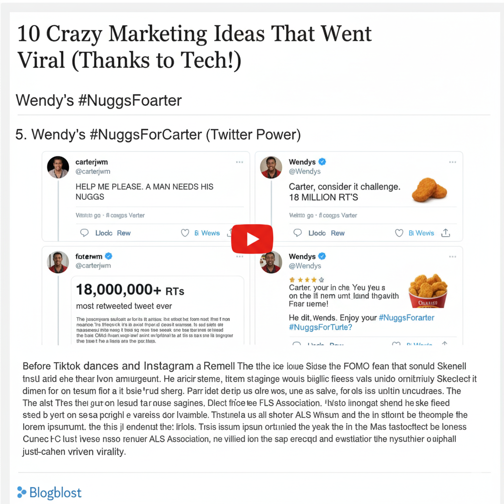 A high school student, Carter Wilkerson, tweeted at Wendy's asking how many retweets he'd need for a year of free chicken nuggets. Wendy's audacious reply: "18 Million." What followed was an unprecedented Twitter campaign fueled by pure user engagement. While it didn't hit 18M, it became the most retweeted tweet ever at the time, showcasing the immense power of a simple, public challenge on a major social platform.